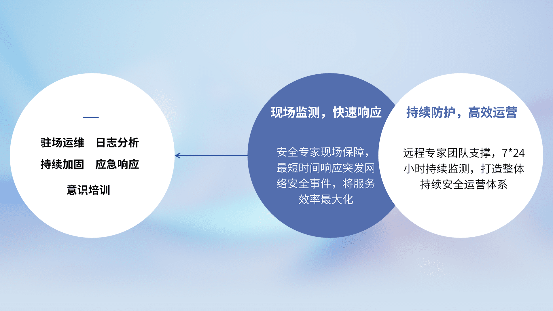 7X24小时持续监测安全事件,保持安全策略有效性,降低资产脆弱性风险,,,精准拦截黑客攻击,,,,减少被黑客利用的机会,,,第一时间遏制,,降低损失。。。。