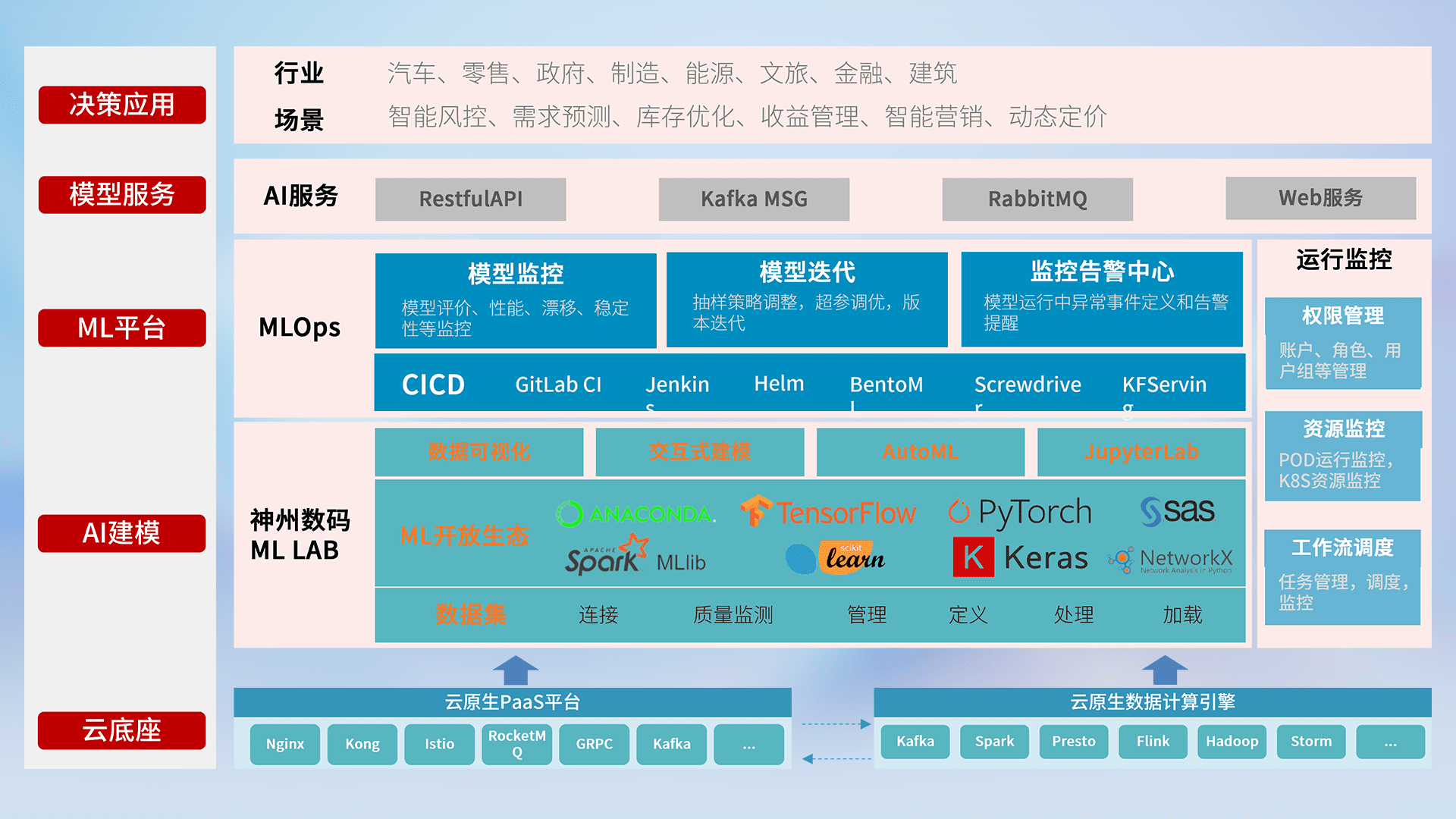 数据+模型双引擎驱动,,,面向智能服务场景,,,快速灵活利用AI技术,,,,支持业务决策,,,助力企业智能化转型破局。。
