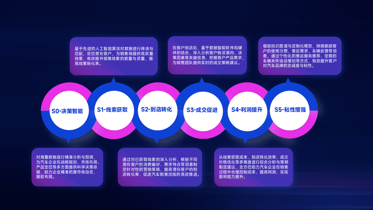 通过拓宽潜在客户来源、、、优化线索分配并提高到店转化率,,,,以增强销售效率。。。同时,,,利用线索数据不断优化分析模型,,有效提升转化率,,,扩大营销影响力。。。。